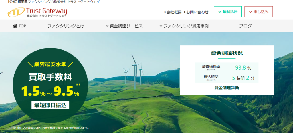 トラストゲートウェイは、豊富な実績を持つファクタリング会社で、特に大手企業向けのサービス提供が特徴です。