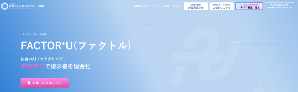 FACTOR⁺Uは、福岡県を拠点に展開しているファクタリング会社で、スピーディな資金提供が特徴です。