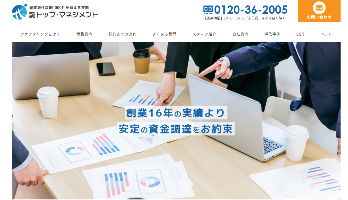 トップ・マネジメントは、65,000件以上の取引実績を持つファクタリング会社です。