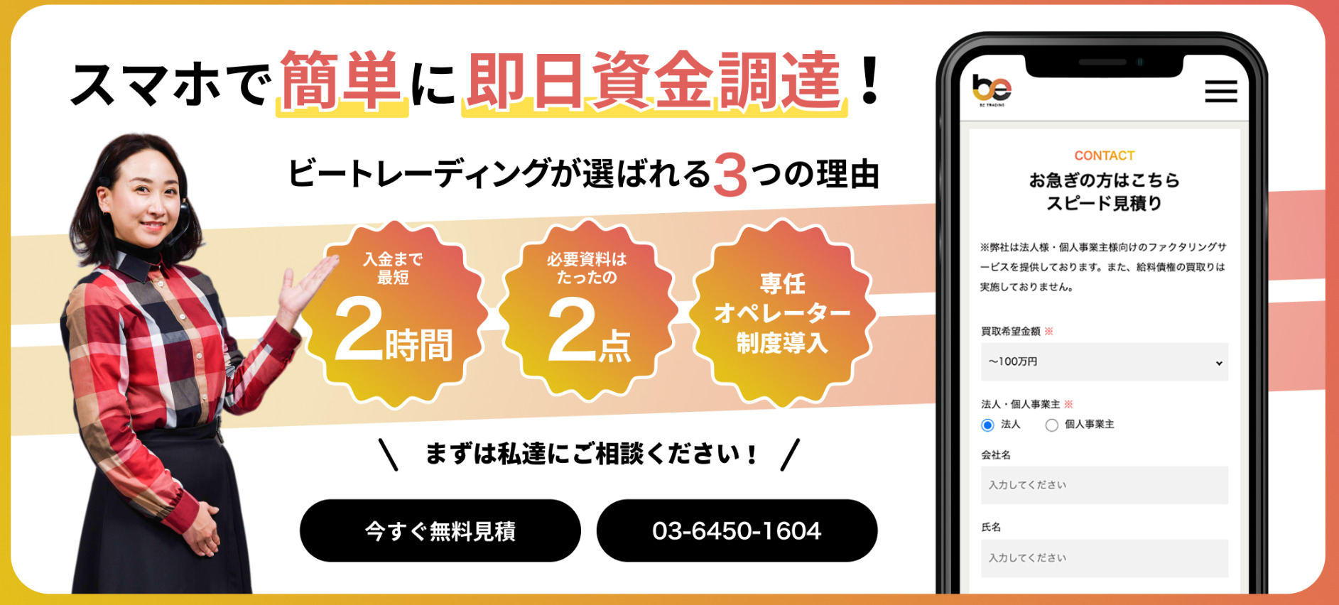 ビートレーディングは2012年に設立された、業界全体でも老舗のファクタリング会社です。