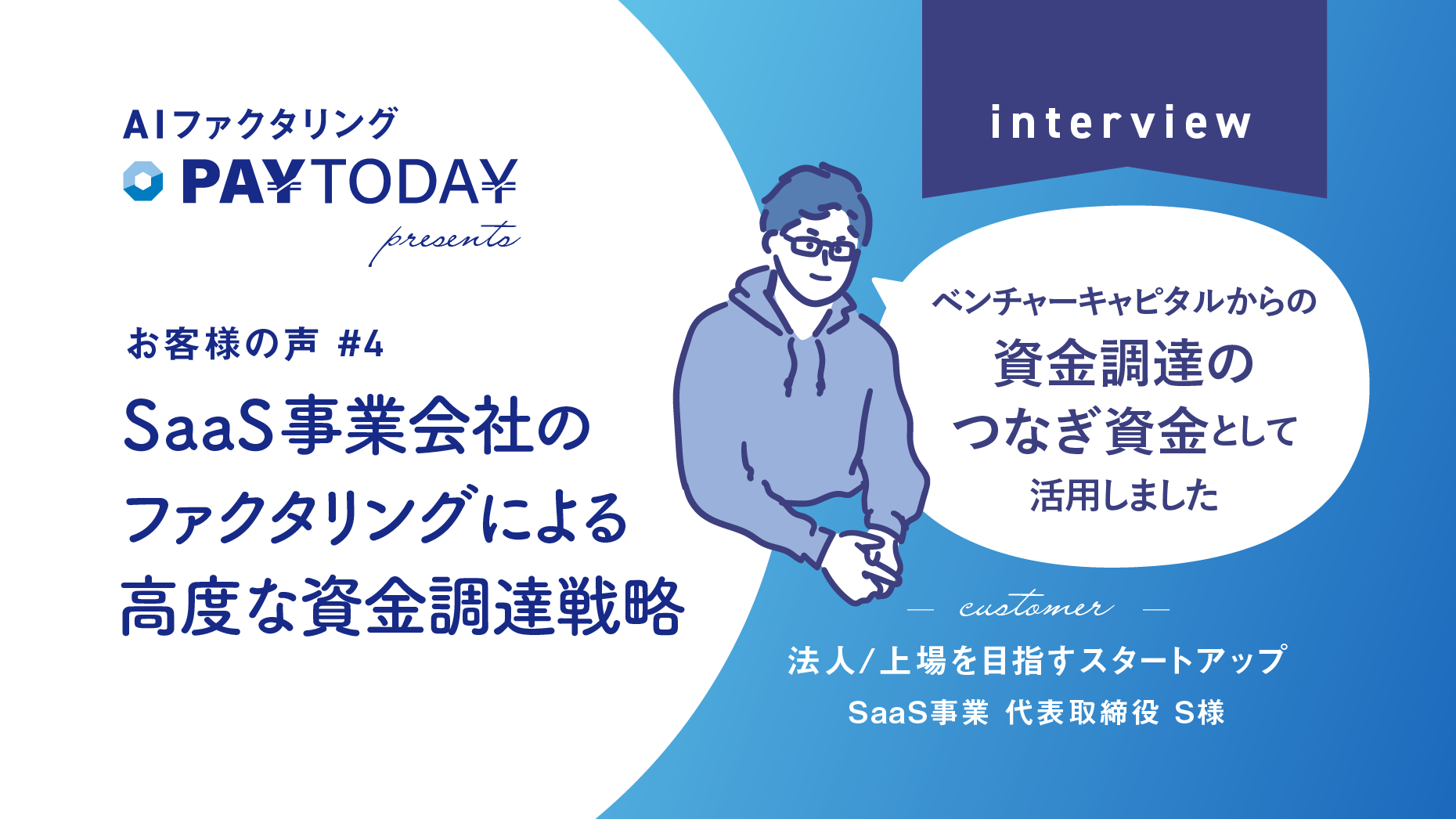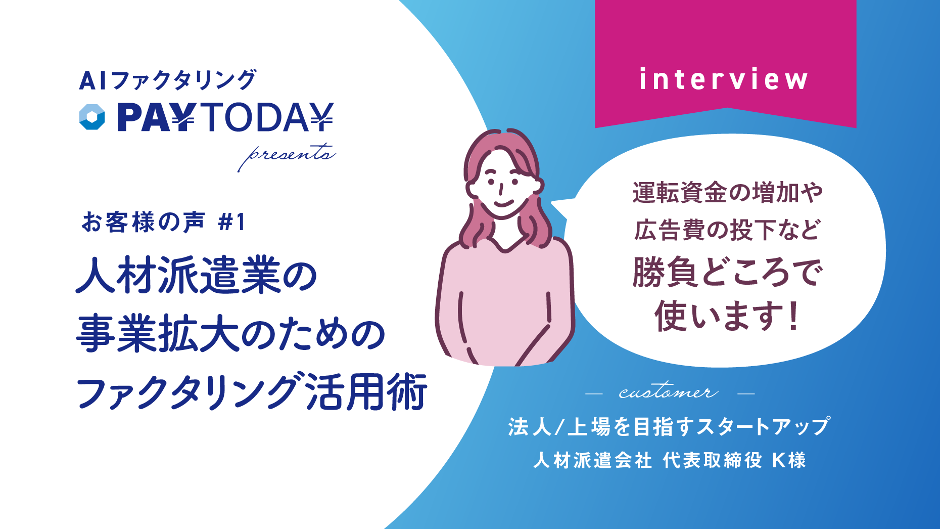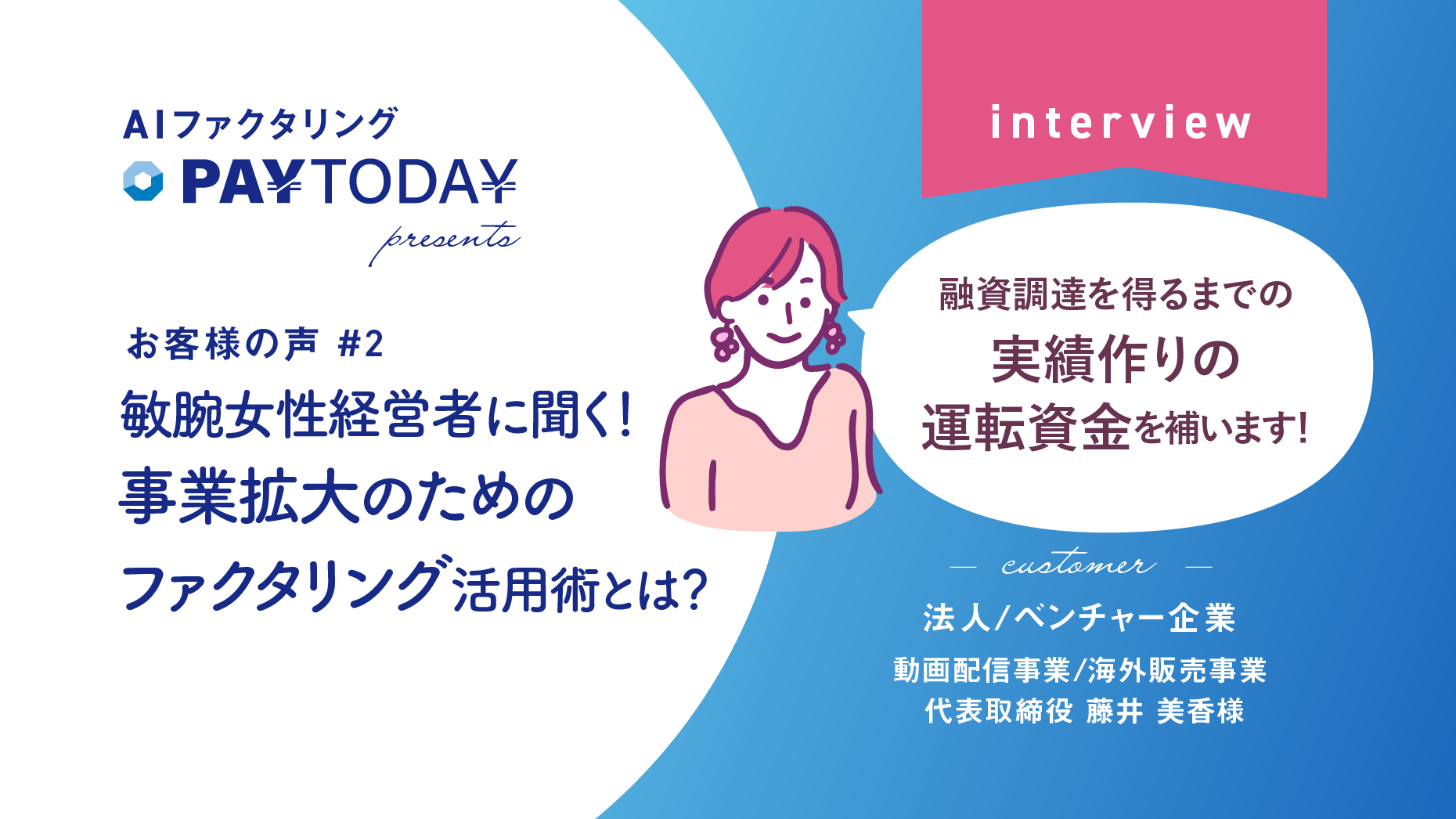 - 資金調達についてあまり考えたことはなかったので少し慌ててしまっていましたが、PayToday様に丁寧に説明いただき安心して利用できました。
