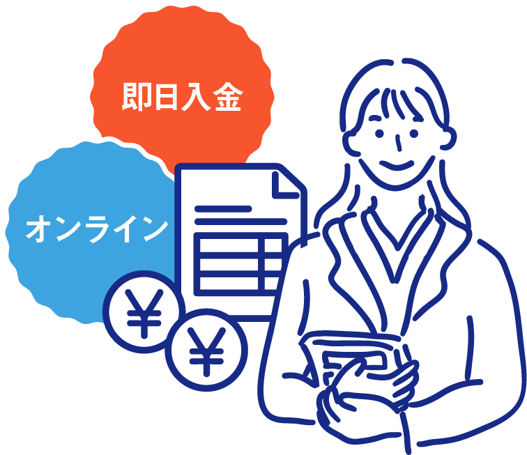 最短30分AI審査により、⾯談不要でオンラインのみでの即日ファクタリングが可能。WEB申し込みと、必要に応じた電話⾯談のみで契約できるため、最短30分での即日着⾦を実現します。*