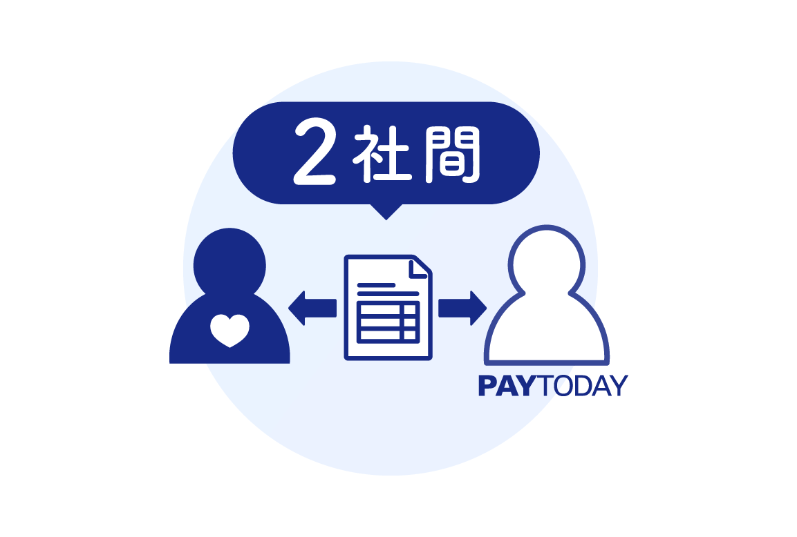 2社間ファクタリングとは、売掛金の譲渡において「お客様(売掛債権者)」と「ファクタリング会社」の2者間だけで契約が完結する方式です。